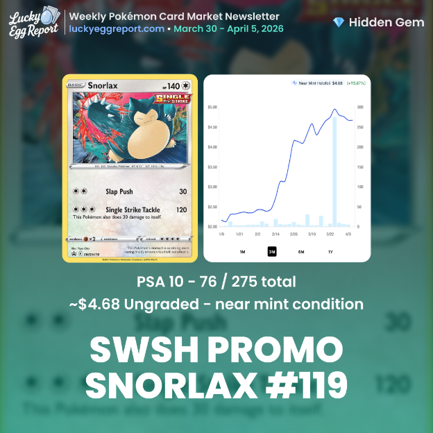 Sales History: One year ago in March 2025, another PSA 10 sold for $610 (~474% vs current). PSA 10 pop sits at 686 out of 1,987 total graded.