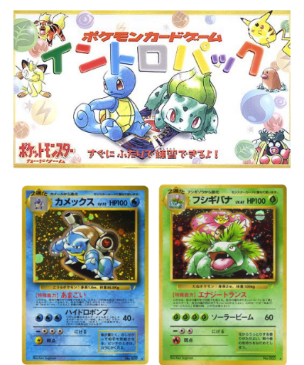 The 1999 Japanese Intro Pack includes sealed Bulbasaur and Squirtle starter decks bundled with a VHS tape. These were entry-level products for the Japanese market.