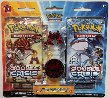 Double Crisis is a 2015 mini set themed around Team Aqua and Team Magma. Each blister contains four booster packs and a collector pin.