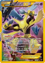 Fun fact about this set is that the marketing material heavily focuses on Mega Alakazam as the unifier of two worlds in the Pokemon universe. Perhaps as a result, it makes for some interesting collaboration on some cards like Lucario #63 which features Mega Alakazam in the background.